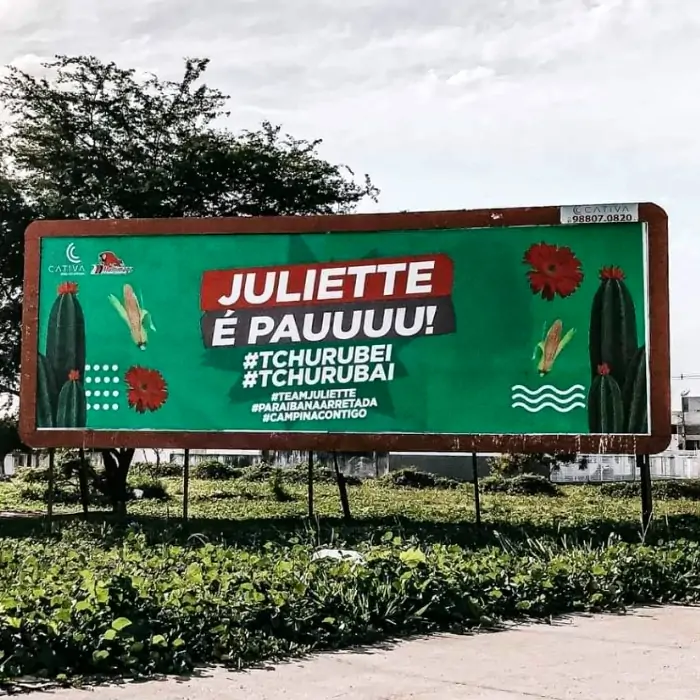 Nas redes sociais circulou a imagem acima como referência a um outdoor exposto em Campina Grande, cidade natal de Juliette campeã do BBB21, com os principais bordões da paraibana.