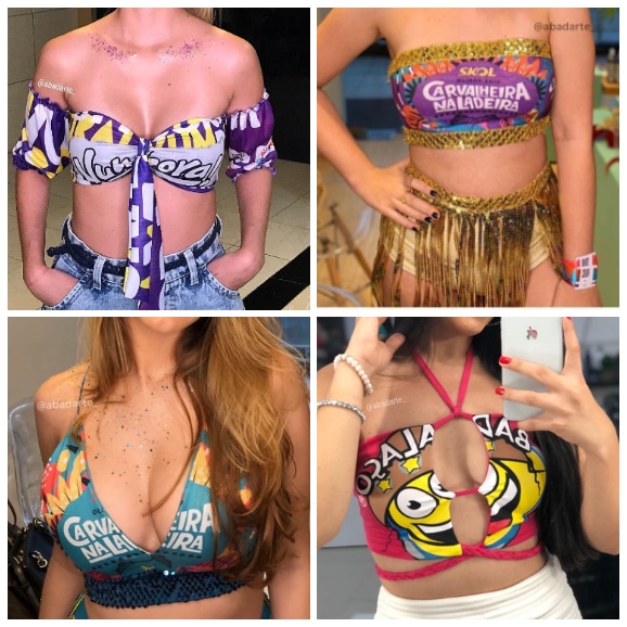 O abadá cropped com o sutiã à mostra é uma excelente aposta. (Fotos: reprodução @abadarte_)