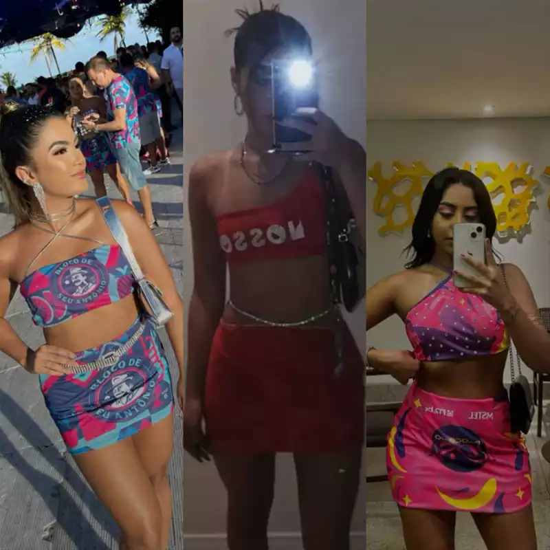 Dá para soltar a criatividade e customizar o abadá de várias formas. (Fotos: reprodução: @mileidemihaile / @abadarte_ / @leydi)