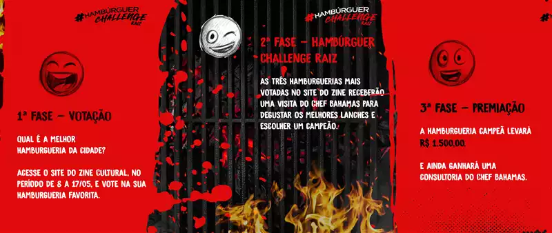 A hambúrgueria campeã levará R$1.500,00 e ainda ganhará uma consultoria do Chef Bahamas.