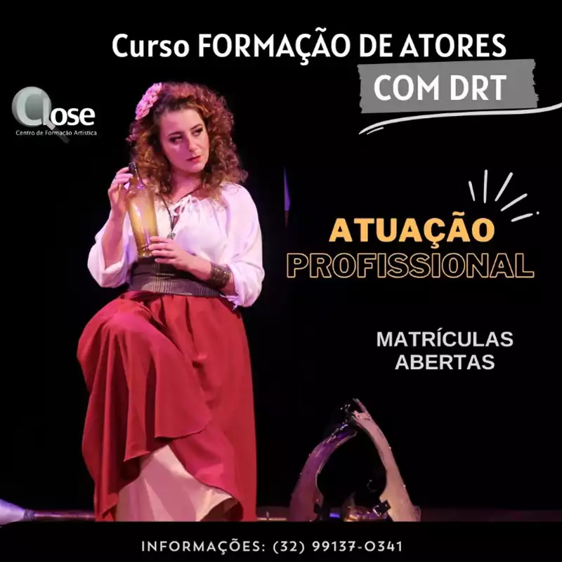 O Close Formação Artística está com matrículas abertas para seu Curso de Formação de Atores profissionais com DRT.