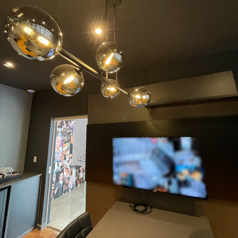 E, aqui no novo endereço Zine Cultural, até as luminárias foram pensadas de acordo com cada ambiente. Na nossa sala do comercial, as luzes da Cidade Luz são super elegantes e dão aquele requinte nas reuniões.