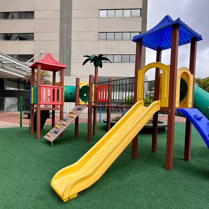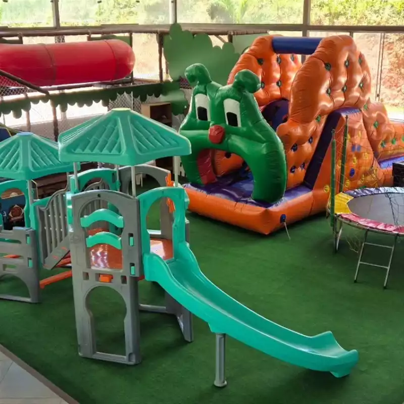 🎨 O que tem no espaço kids: mini escorregador, casinha