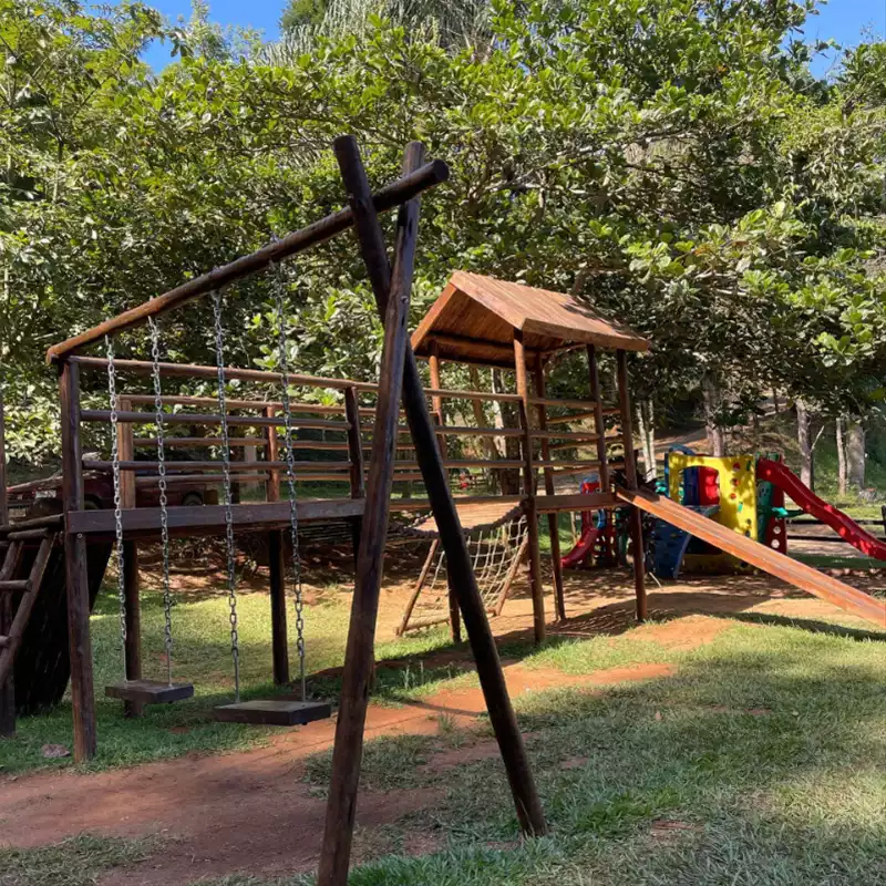 🎨 O que tem no espaço kids: Brinquedão, balanço e escorregador.