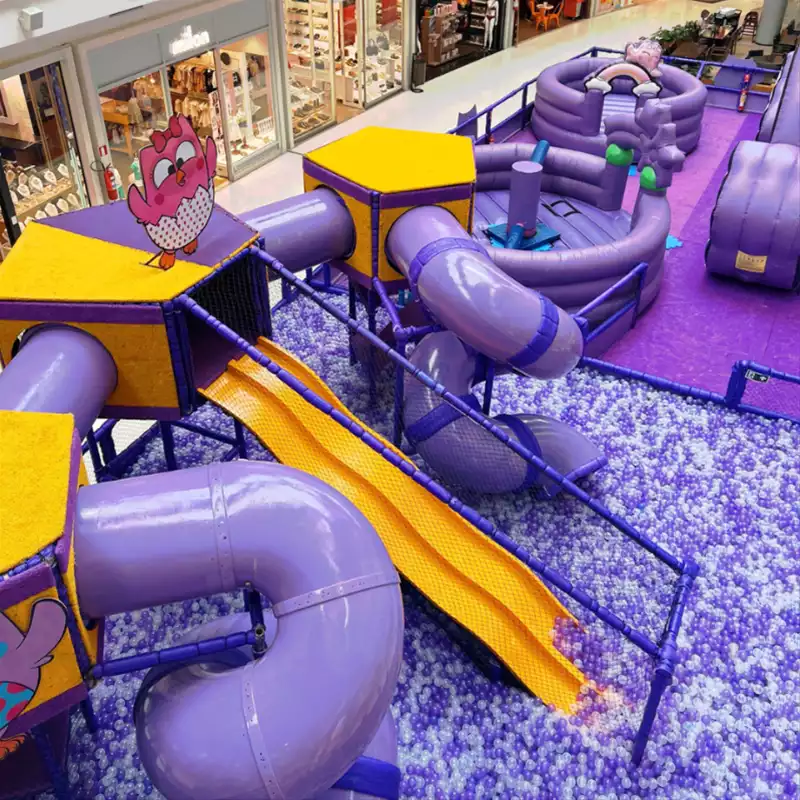 O Vila dos Dragões conta com uma piscina gigante de bolinhas, escorregadores, gira radical, dragões e um circuito que estimula a criatividade e os sentidos.