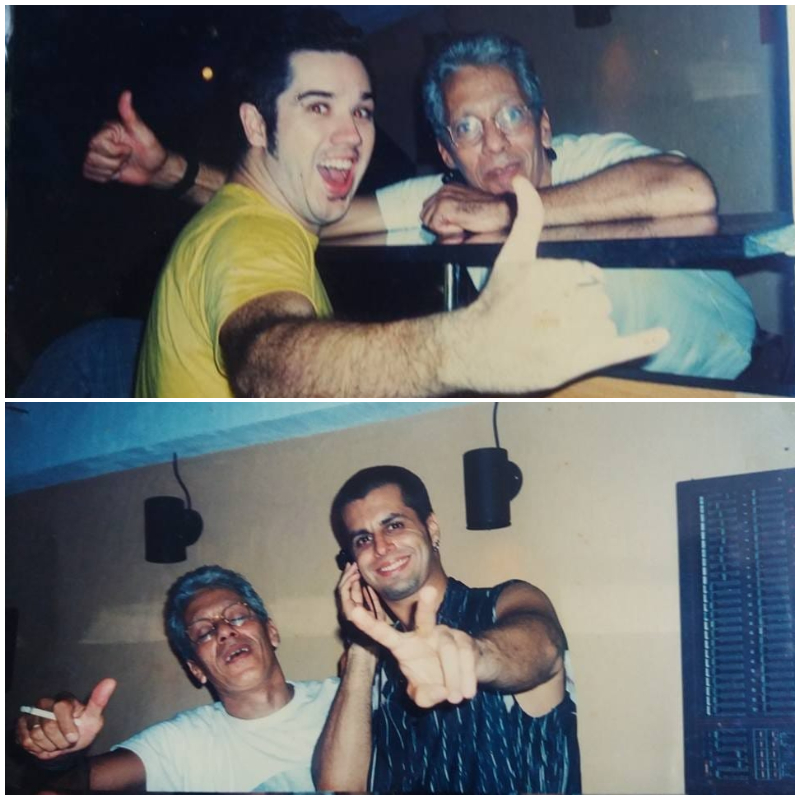 DJ Vovô posa com Rogério Flausino e Marco Túlio, respectivamente vocalista e guitarrista da banda Jota Quest (Foto: Arquivo Pessoal)