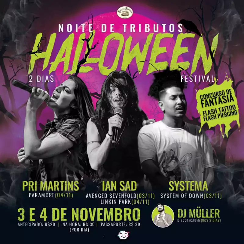 🎃 Atrações: Bateria Milagrosa, Acoustic N’ Roll e 3 Dias