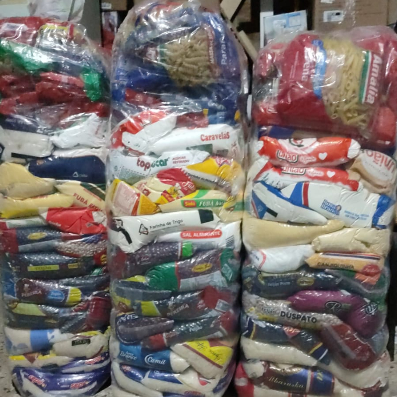 Assim como a quantidade de alimentos, o número de cesta produzidas também varia de acordo com o evento. Em média, são montadas de 20 a 50 cestas básicas por show.