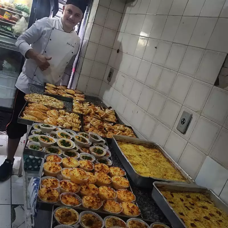 Além dos famosos lanches podrão, eles também tem salgados, como coxinha e os de pizza, e espetinho!