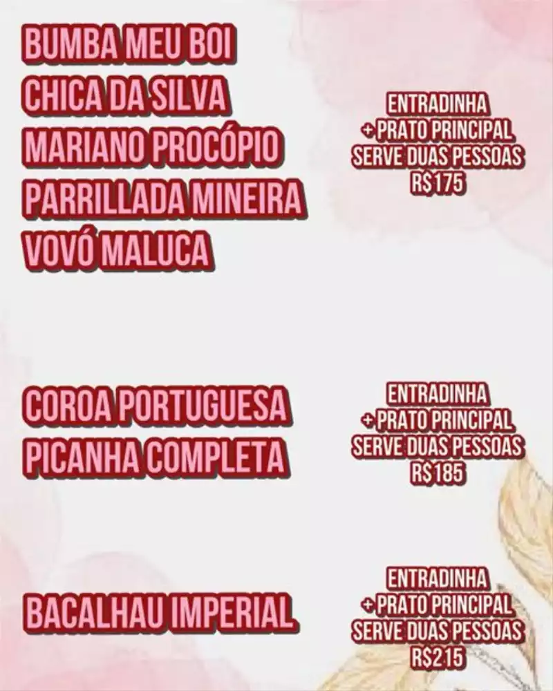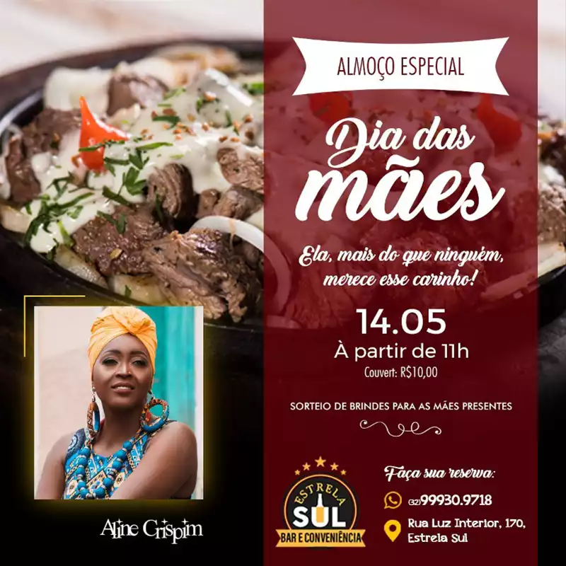 Dia das Mães: O Império do Norte apresentará um cardápio especial no dia das mães, com opções de arroz ao alho, arroz a grega, salada Ceaser, Musseline e muito mais! Além disso, ainda vai ter música ao vivo.