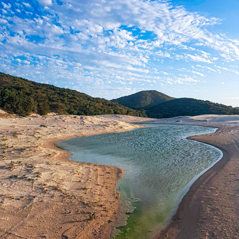 A explicação do seu nome se dá por sua paisagem, que é formada por dunas que formam piscinas naturais de água doce. O cenário vai te levar de Cabo Frio diretamente para uma uma espécie de deserto em pleno litoral.