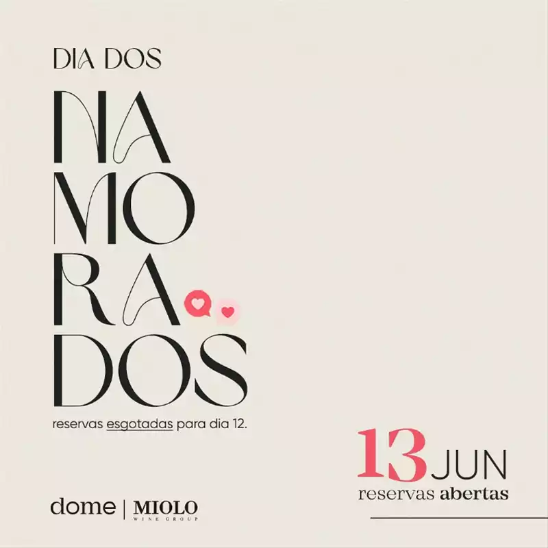 💘 As reservas para comemorar a data no dia 12/06 na Dome já esgotaram. Mas você ainda pode aproveitar o menu especial da casa no dia 13/06 (quinta-feira – feriado).