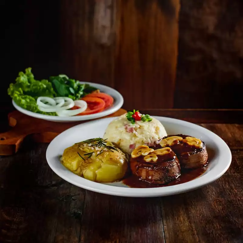 🍴 Sugestão da Casa: Menu especial de medalhão à piamontese, uma garrafa de vinho chileno e sobremesa além do menu tradicional da casa.