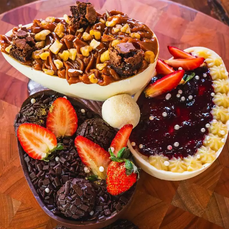 Além de ovo de colher, também é possível encomendar ovo barra e outras sobremesas de Páscoa!