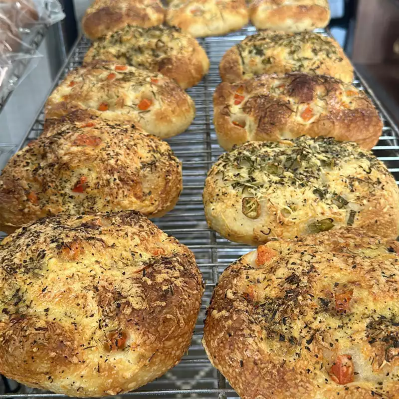 São focaccias, baguetes, ciabattas, sourdouch e mais, tudo isso em sabores variados, que vão desde cúrcuma até calabresa!