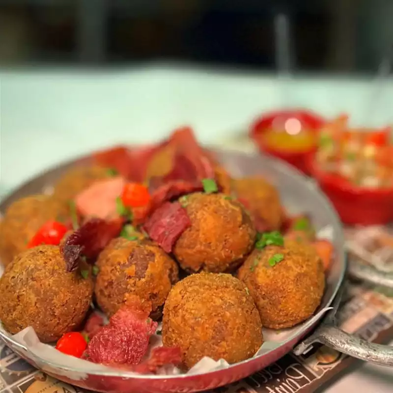 Outro petisco que é carro chefe da casa é o bolinho de costela!