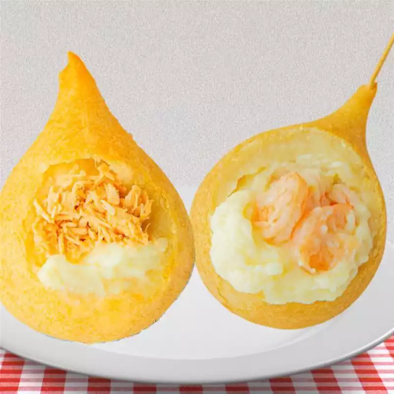 Tem de frango, catupiry, camarão! E ainda tem outros salgados e doces. Da pra comprar e levar pra toda a galera experimentar!