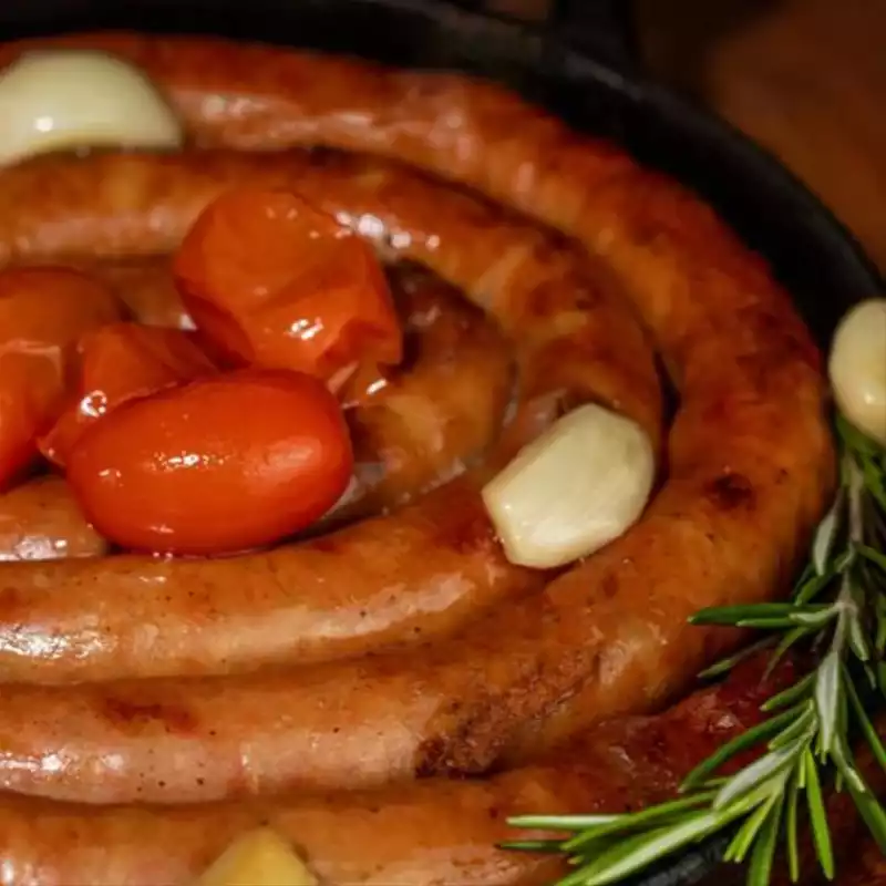 Lá, além de pizzas e pratos, também tem aquela linguiça alemã clássica!