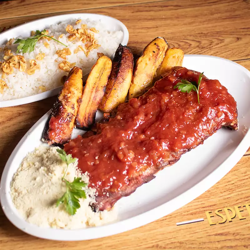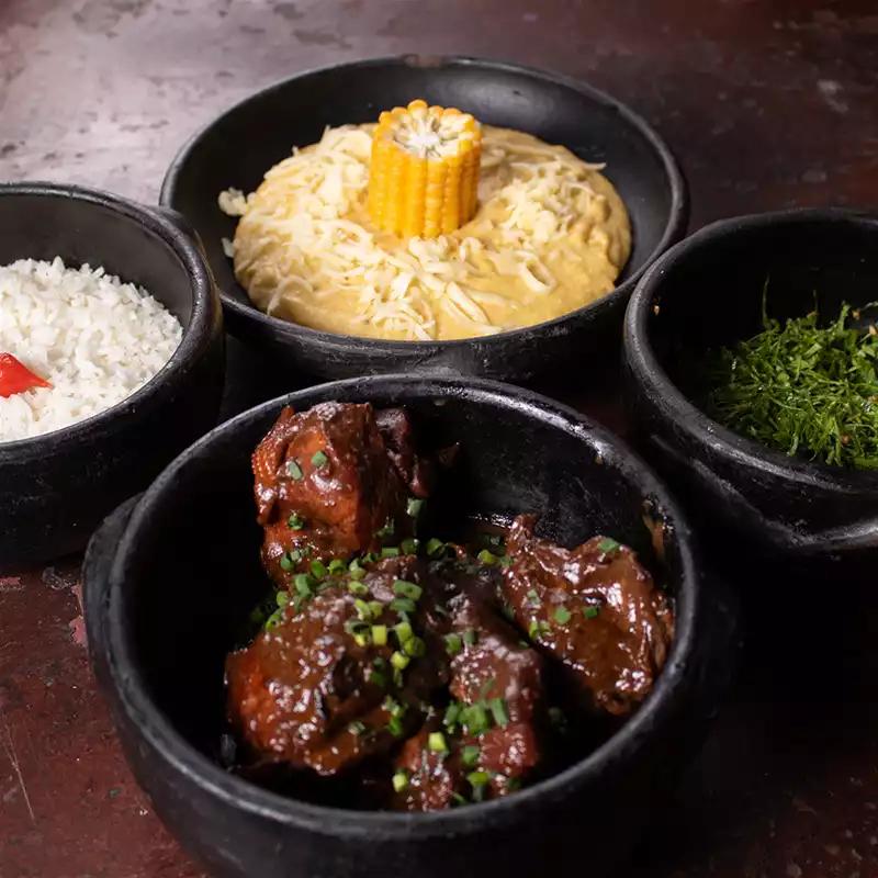 - Receita: Costela bovina desfiada escondida por um macio e delicioso purê de mandioca e uma camada generosa de requeijão e queijo minas padrão, coberto por geleia de tomate e muçarela gratinada.