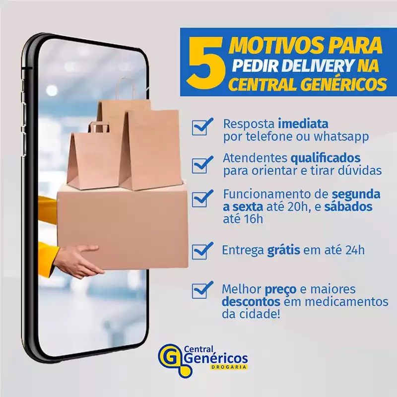 A Central Genéricos não apenas oferece remédios genéricos, mas também compartilha informações relevantes e a experiência de seus especialistas. Com ética e transparência, fortalece sua atuação diariamente, priorizando qualidade, atenção e vantagens pelo menor preço.