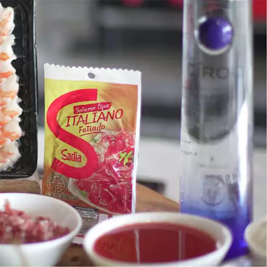 – Agora basta servir no copo com camarão da Qualimar grelhado.