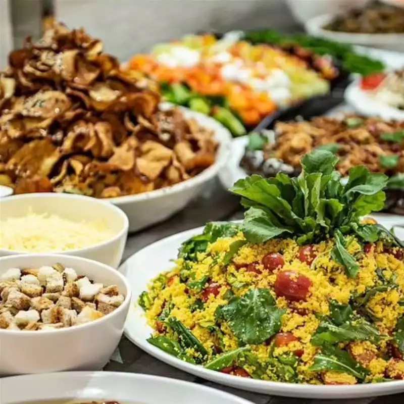 O restaurante tem opções de almoço executivo e lanches, além de ser também confeitaria e café. Nas quintas, o Vó Sinhá trabalha com buffet árabe.