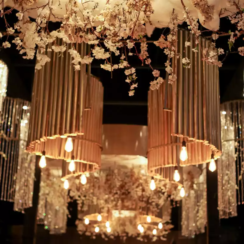 “O cristal e o dourado tomaram conta do salão, traçando linhas sinuosas complementadas por tetos de nuvens de flores, trazendo leveza, requinte e sofisticação. Certamente algo inovador que entrou para a história com a utilização de materiais diferenciados no mercado." – Paula Benetello, sócia da SL Eventos