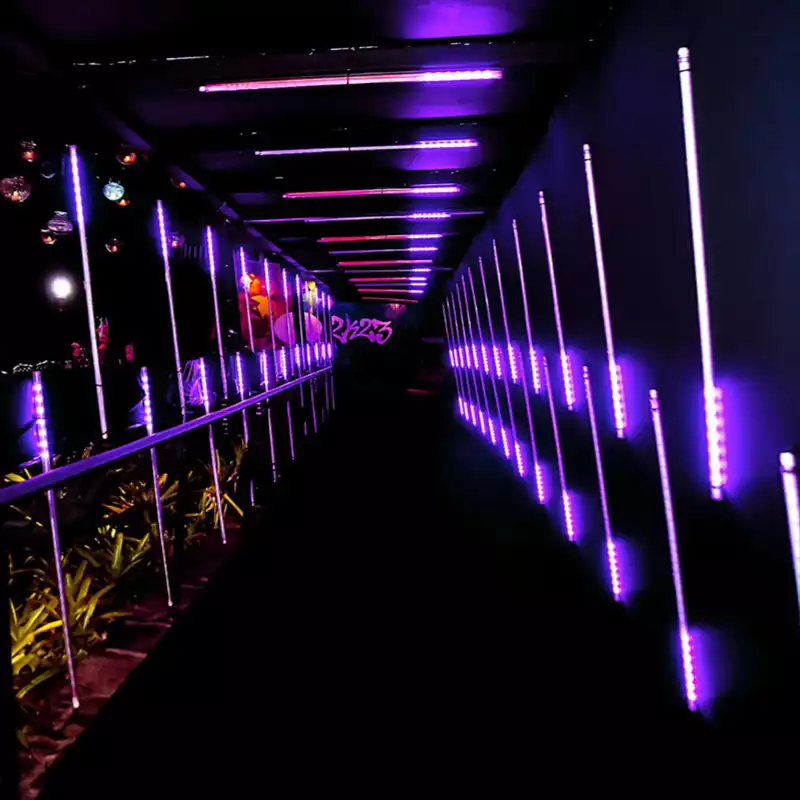 Ainda realizam produções feitas com os tubos de led que são super versáteis e podem ser usados no teto, nas paredes, como moldura, tudo para dar aquele toque especial nas festas.