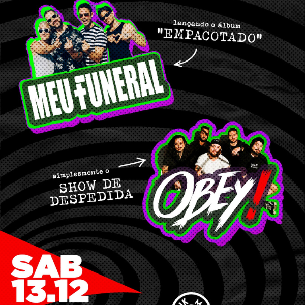 🎶 Atração: Banda Meu Funeral lançando o álbum “Empacotado” e show de despedidada da banda Obey