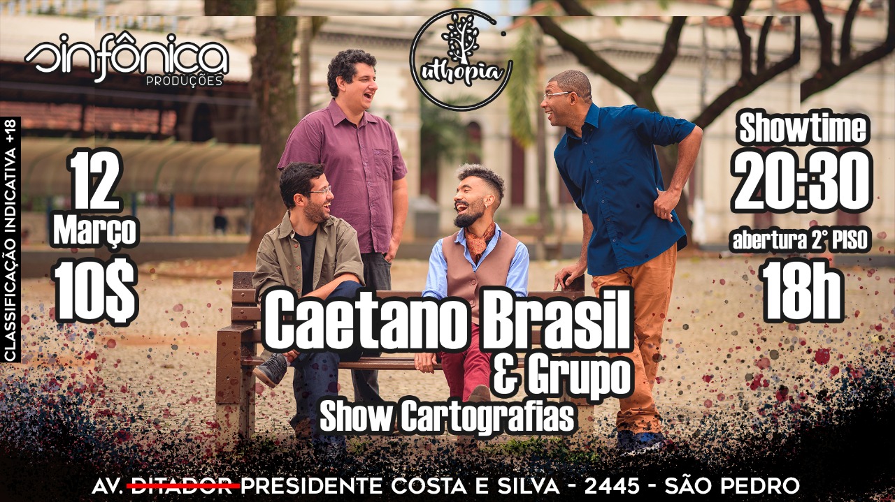 No dia 12/03 (quinta) é apresentado o Show Cartografias do artista Caetano Brasil, no Uthopia. O clarinetista juiz-forano completa 10 anos de carreira em 2020 e como ação comemorativa ele promove shows na cidade. Junto a Caetano, se apresentam também os músicos Guilherme Veroneze (piano), Adalberto Silva (baixo) e Gladston Vieira (bateria). O repertório é composto pela combinação de ritmos, do choro brasileiro com diversas influencias pelo mundo que forma o choro contemporâneo.