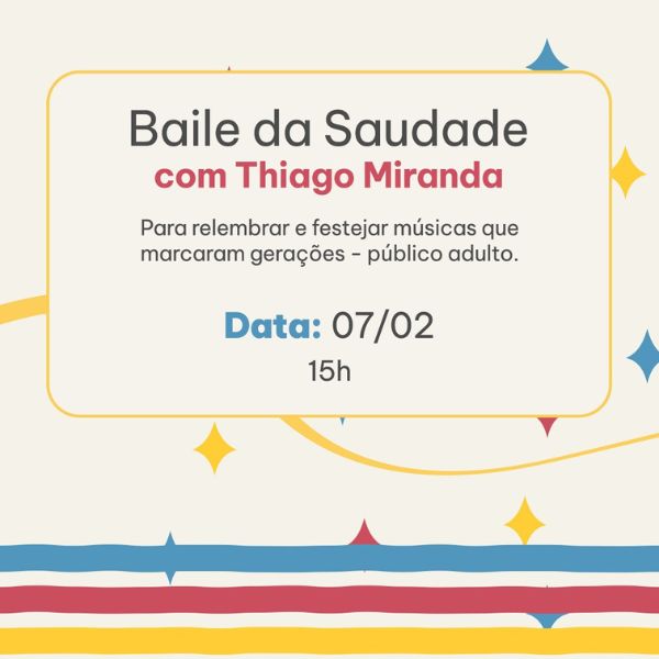 🎊 15h –  Baile da Saudade com Thiago Miranda (público adulto)