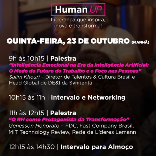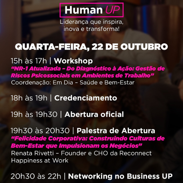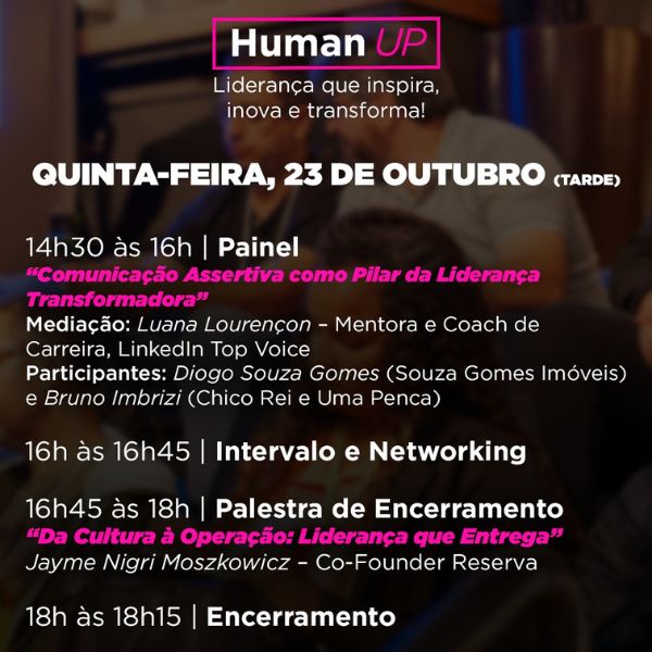 O evento é voltado para lideranças, gestores, profissionais de RH, desenvolvimento humano, empresários e executivos que desejam se atualizar e transformar a forma como lideram.