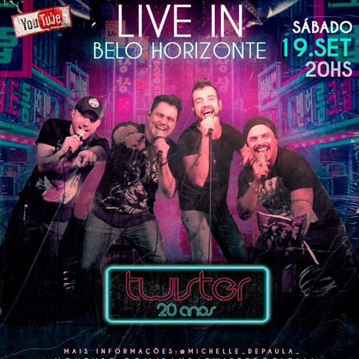 No dia 19/09 (sábado), a partir das 20h, ocorre a live da Banda Twister, diretamente de Belo Horizonte (MG).