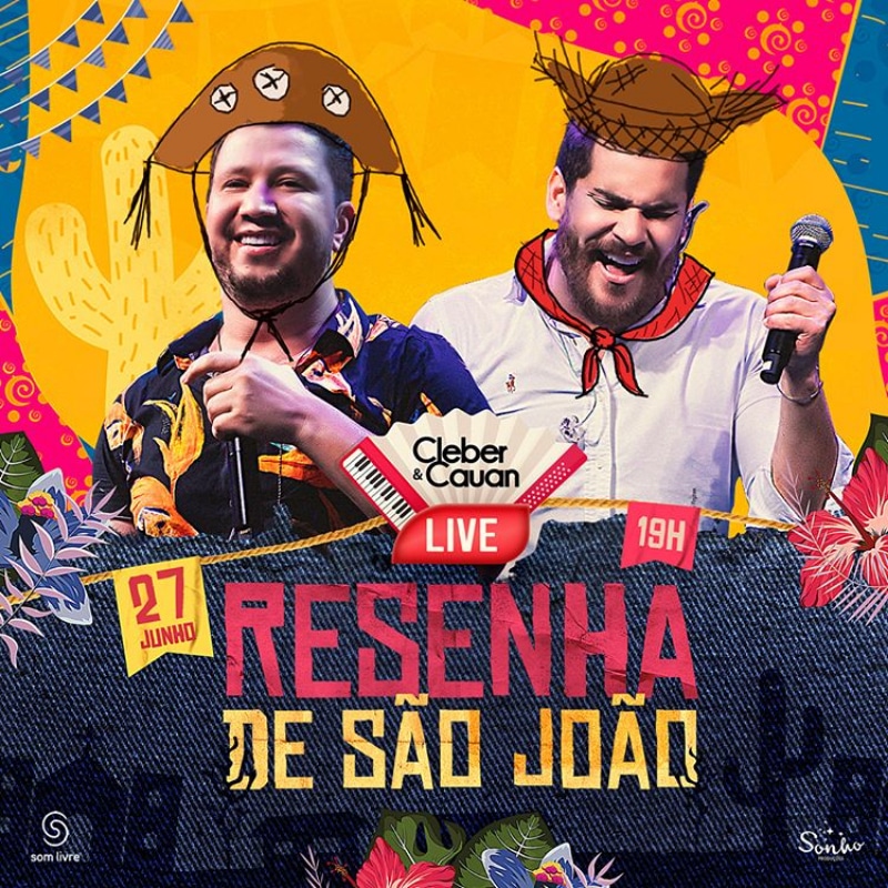 A nova live do Cleber & Cauan ocorrerá no dia 27/06 (sábado), a partir das 19h, no canal oficial da dupla no Youtube! Dessa vez, a apresentação terá o tema “Resenha de São João”.