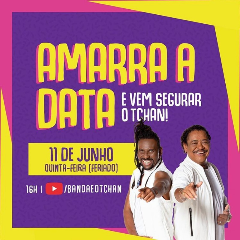 No dia 11/06 (quinta-feira), a partir das 16h, ocorre a live do �? o Tchan com Beto Jamaica e Compadre Washington. No repertório, os sucessos antigos e novos da banda de pagode.