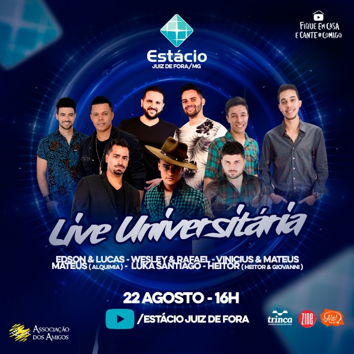 No dia 22/08 (sábado), a partir das 16h, ocorre a live Universitária Estácio. A faculdade apresenta a primeira live de música de uma instituição de ensino superior. Tudo ocorrerá diretamente de dentro da faculdade com transmissão em seu canal oficial do Youtube.