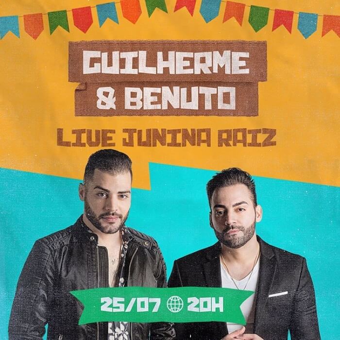 No dia 25/07 (sábado), a partir das 20h, ocorre a live do Guilherme & Benuto, com transmissão no canal da Filtr Brasil no Youtube. No repertório, músicas sertanejas de sucesso e a canção da dupla “3 Batidas”.