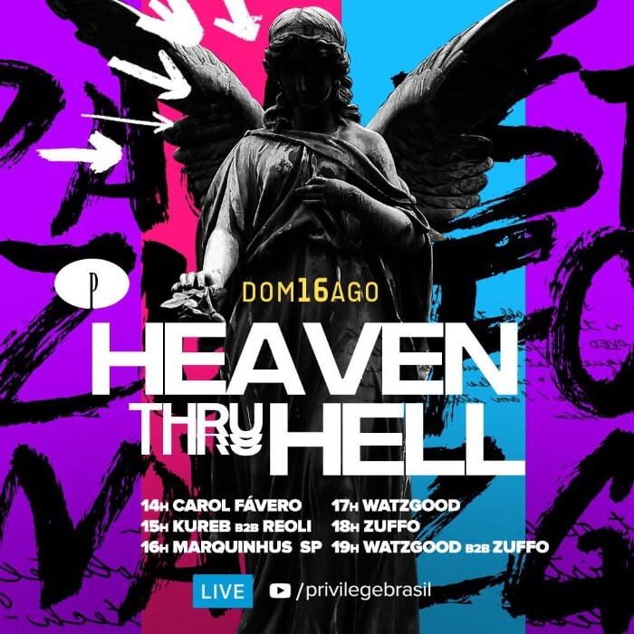 No dia 15/08 (sábado), a partir das 14h, ocorre a live da festa Heaven Thru Hell. O evento será transmitido por meio do canal oficial da PrivilegeBrasil no Youtube.
