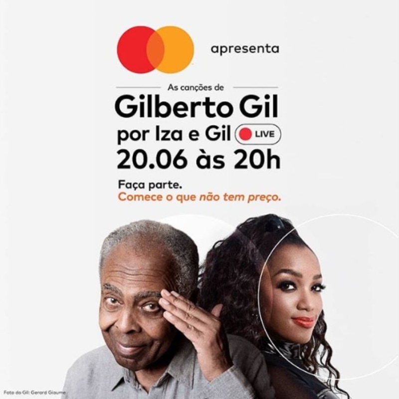 No dia 20/06 (sábad), a partir das 20h, ocorre a live dos cantores Iza e de Gilberto Gil. A transmissão ocorre de forma gratuita por meio do canal oficial da Mastercard no Youtube. O show ao vivo faz parte do movimento “Fique em casa e cante #Comigo”.