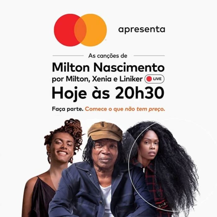 No dia 31/07 (sexta-feira), a partir das 20h30, ocorre a live do Milton Nascimento com Xenia França e Liniker. No repertório, as canções de sucesso que marcaram a carreira de Milton, como “Maria, Maria”, “Travessia”, “Caçador de Mim” e “Canção da América”. A apresentação será exibida na TV Multishow e nos canais do Youtube Música Multishow e Mastercard.