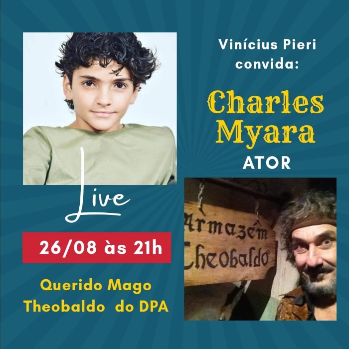 - 26/08 (quarta-feira) as 21h: Charles Myara (ator)