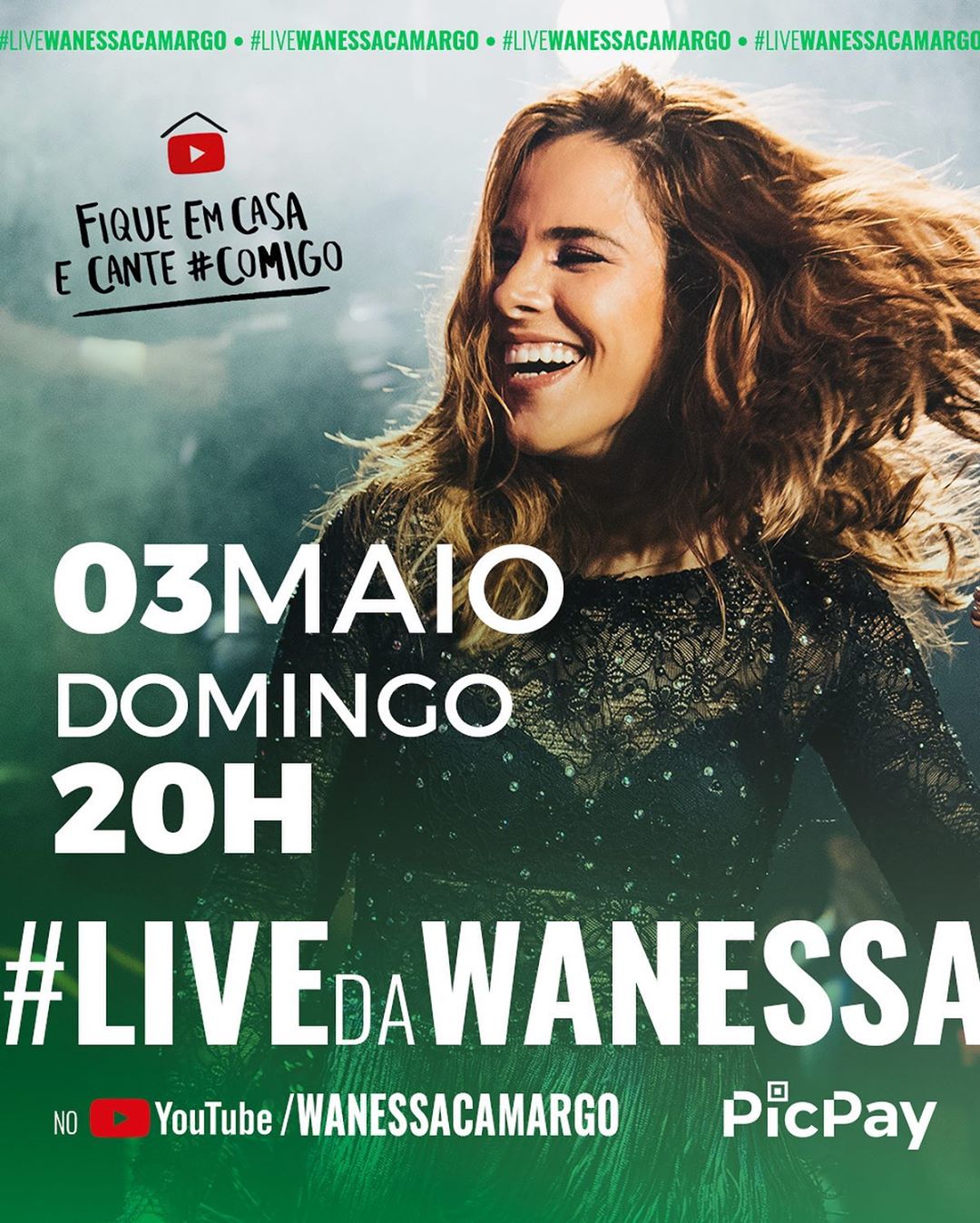 No dia 03/05 (domingo), ocorre live da cantora Wanessa Camargo no Youtube, a partir das 20h. A iniciativa é da artista junto com a empresa PicPay, que possui o objetivo de arrecadar doações para as ONGs e instituições que estão no combate ao COVID-19. Além das músicas, Wanessa anunciou em suas redes sociais que fará um anúncio surpresa especial.