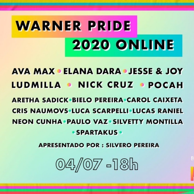 No dia 04/07 (sábado), a partir das 18h, ocorre a live do Warner Pride 2020 edição brasileira. A apresentação terá participação de diversos artistas nacionais e internacionais. A transmissão será realizada por meio do Youtube.