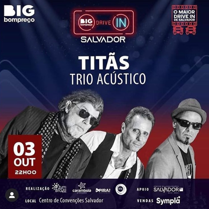 No dia 03/10 (sábado), a partir das 22h, ocorre o show Titãs Drive-in, no Big Drive-in, em Salvador (BA).