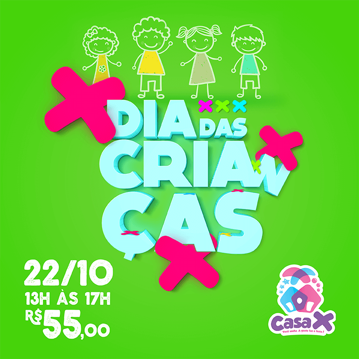 O Dia das Crianças da Casa X será comemorado no domingo (22 de outubro)! A programação especial para os baixinhos contará com show do Txutxucão, oficinas e brincadeiras para todas as idades! O lanche é incluso no valor do ingresso e as atividades oferecidas são: