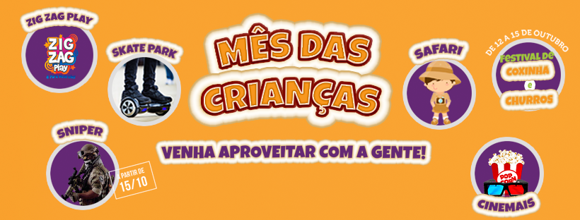 Durante todo o mês de outubro, o Shopping Jardim Norte oferece uma programação oficial para o Mês das Crianças! As atrações são Airsoft Spinner, Skate Park Hoverboard, além do cinema e o Safari da Turma do Bundindin!