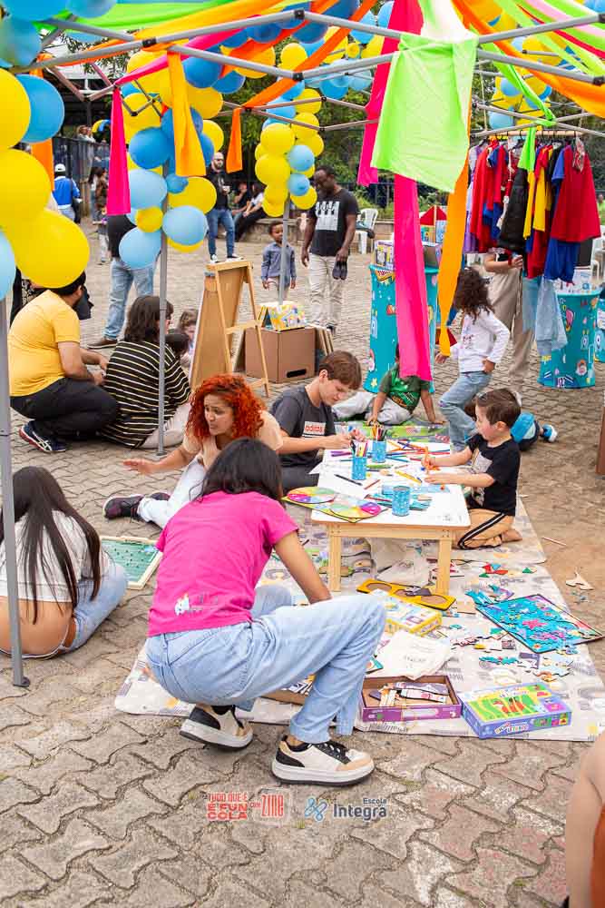 A tarde contou com dinâmicas, brincadeiras, parque, praça de alimentação, oficinas, atividades culturais e muito mais!