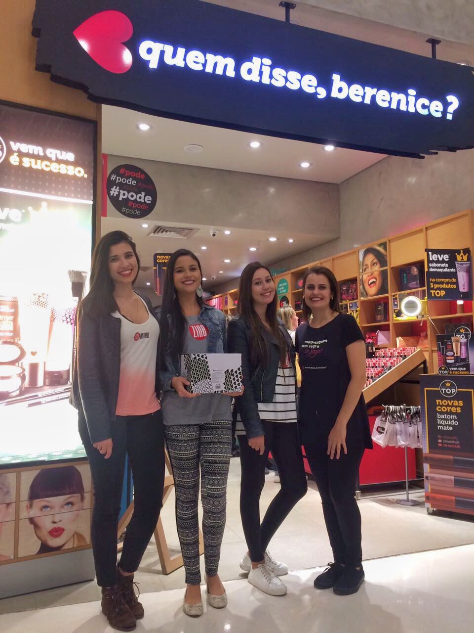 Tainá Voltas, Karina Gomes e Rívia Petermann (equipe do Zine Cultural) com Débora, gerente da “Quem Disse, Berenice?”