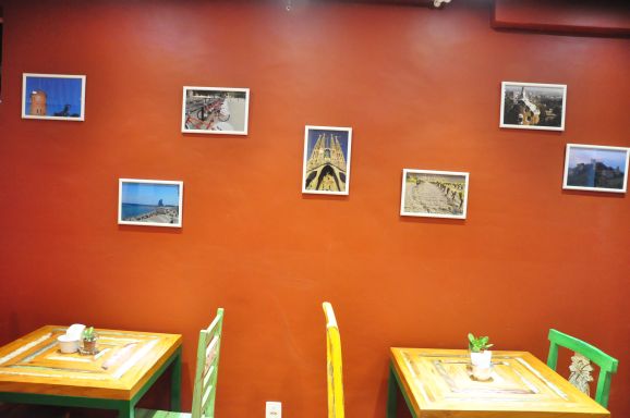 Fotos feitas na própria Espanha e colocadas na parede do Barceloneta